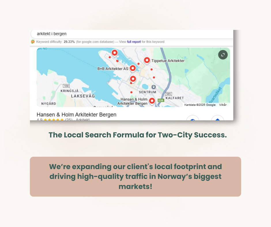 • 0 → 30+ first-page keywords on Google.no