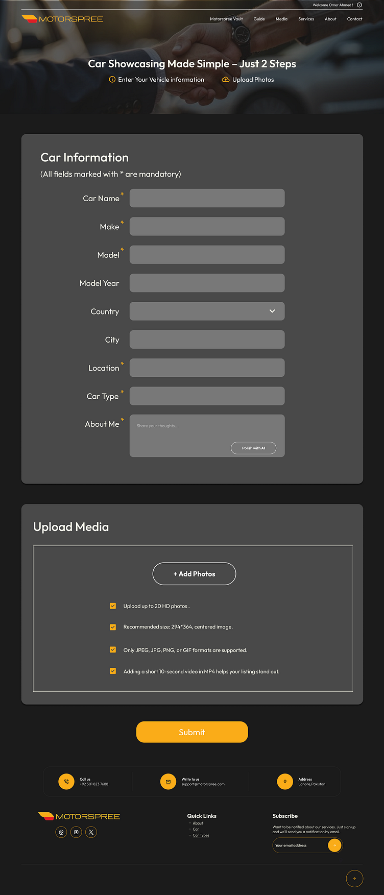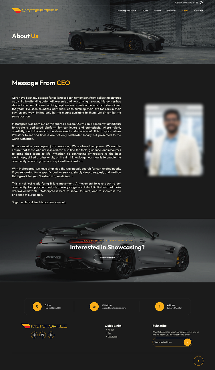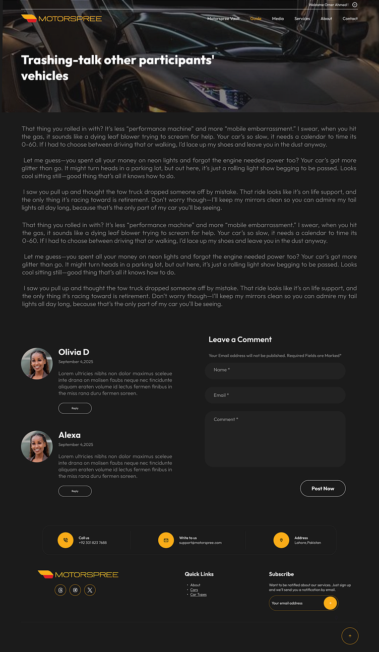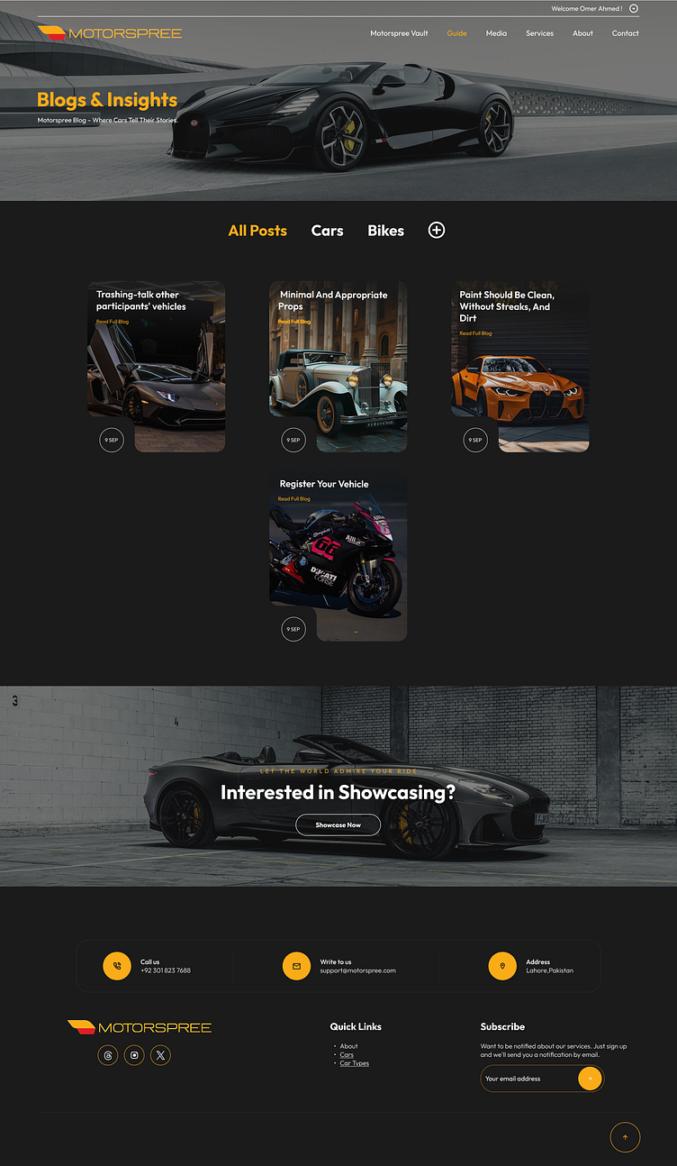 MOTORSPREE is a digital platform built for car enthusiasts — a space where passion for automobiles meets technology and design. The client’s goal was to create an engaging, user-friendly interface that connects car lovers, allows them to share experiences, explore events, and discover trending automotive content.