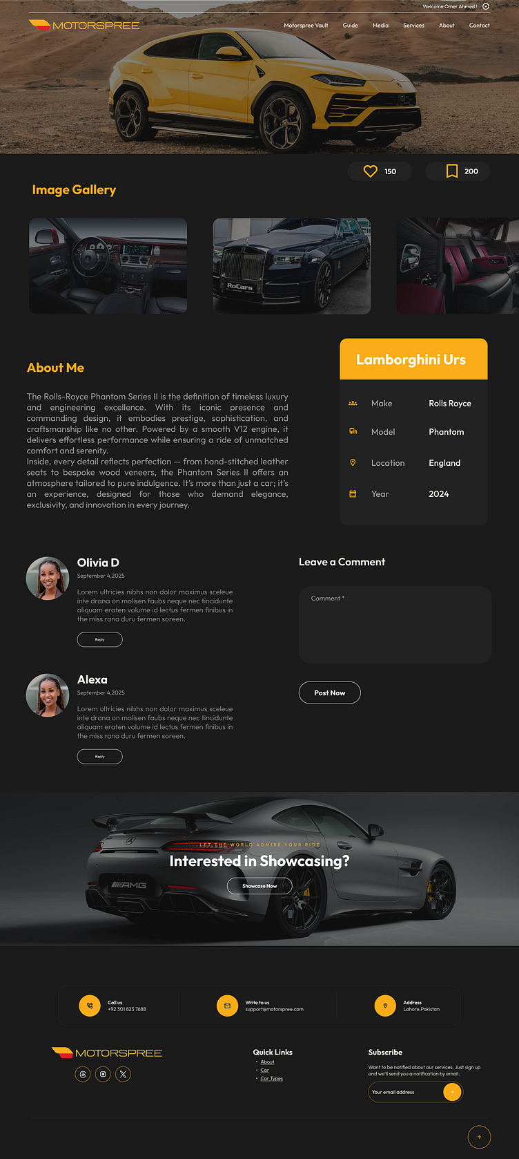 • Homepage: A visually rich layout highlighting trending cars, events, and featured members.